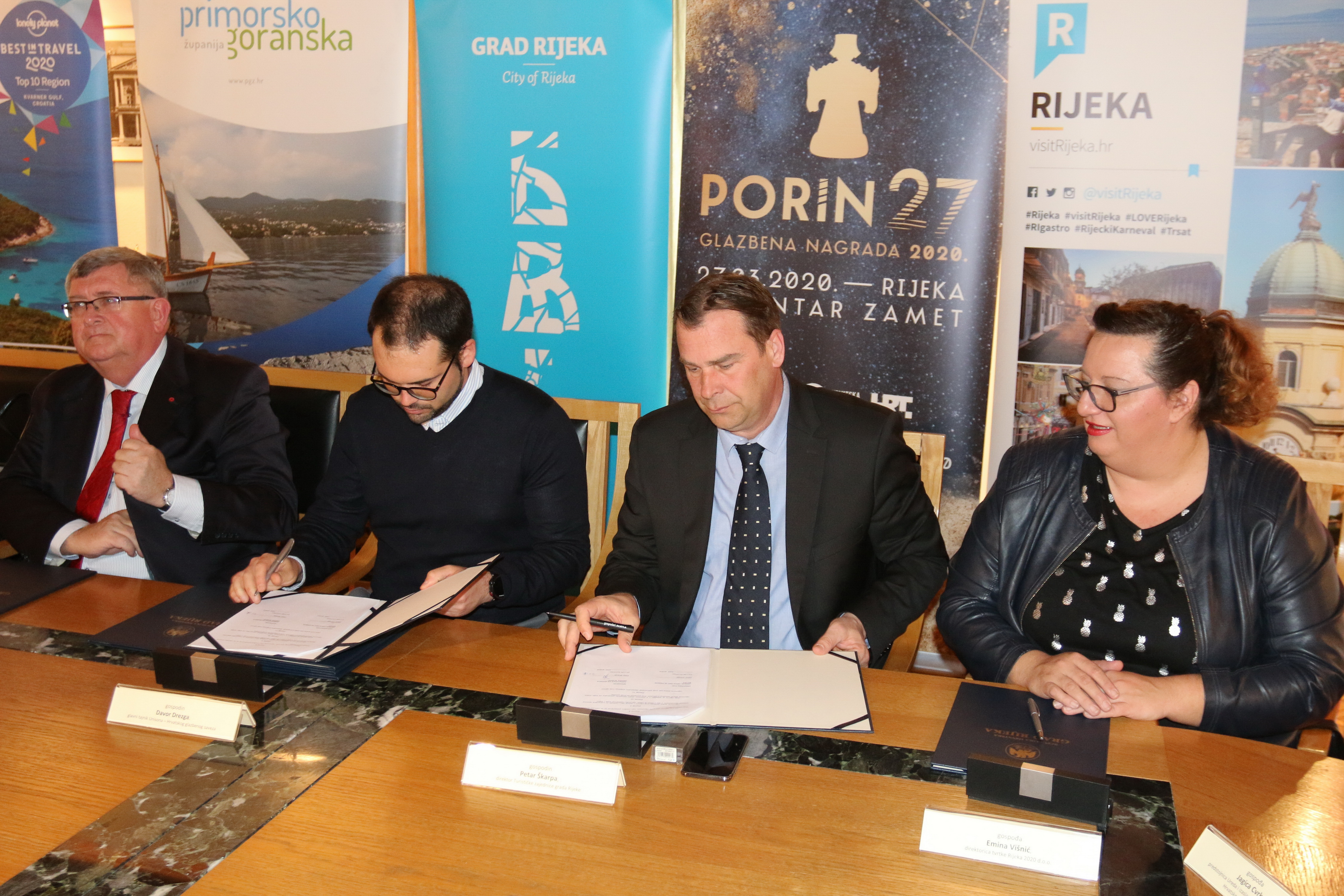 U Salonu Grada Rijeke danas se održalo svečano potpisivanje ugovora o suradnji te realizaciji 27. izdanja Glazbene nagrade Porin pod pokroviteljstvom Grada Rijeke, Turističke zajednice grada Rijeke, tvrtke Rijeka 2020 d.o.o., Primorsko-goranske županije te Turističke zajednice Kvarnera. Završna svečanost dodjele nagrada održat će se u petak 27. ožujka 2020. godine u Centru Zamet u izravnom prijenosu na Prvom programu Hrvatske televizije te na Drugom programu Hrvatskoga radija.