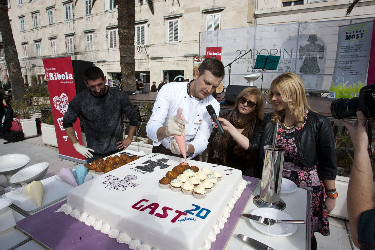 Na zajednički poziv organizatora Porina i splitskog sajma GAST odazvali su se brojni Splićani. Na druženju su pjevačica Meri Cetinić i glumac Slavko Sobin s kuharima restorana Biberon pripremali slasne torte i kolače. U samo pola sata pojele su se sve delicije, a kako su Splićani bili pozvani da za svaku porciju torte daju dobrovoljni prilog za udrugu Most, prikupila su se i značajna novčana sredstva.