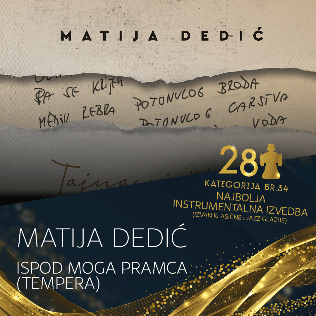 - izvođač Matija Dedic za izvedbu skladbe 'Ispod moga pramca (Tempera)', album 'Tajna vještina - Glazba Zlatana Stipišića Gibonnija', nakladnik Croatia Records