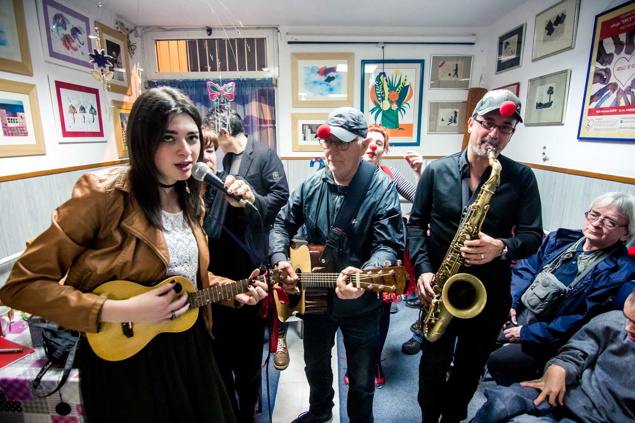 Druženje je započelo dolaskom klaunova doktora, poznatijih kao "Crveni nosovi" koji su odmah razveselili okupljene. Članovi udruge glazbenicima i organizatorima Porina pripremili su malo iznenađenje zapjevavši uz voditelja glazbene radionice Marija Bavčevića Oliverove hitove poput "Nadaline" i "Oprosti mi, pape", a potom su "padali" i dueti od kojih zastaje dah i pusti se suza radosnica. Glazbene zvijezde odužile su im se zajedničkim nastupom te su zapjevali i zasvirali na opće oduševljenje prisutnih. ​Prekrasno druženje okrunio je prigodnim poklonom Neven Frangeš, a sve je završilo i zajedničkom fotografijom za uspomenu na plemenitu noć uzajamnog darivanja.