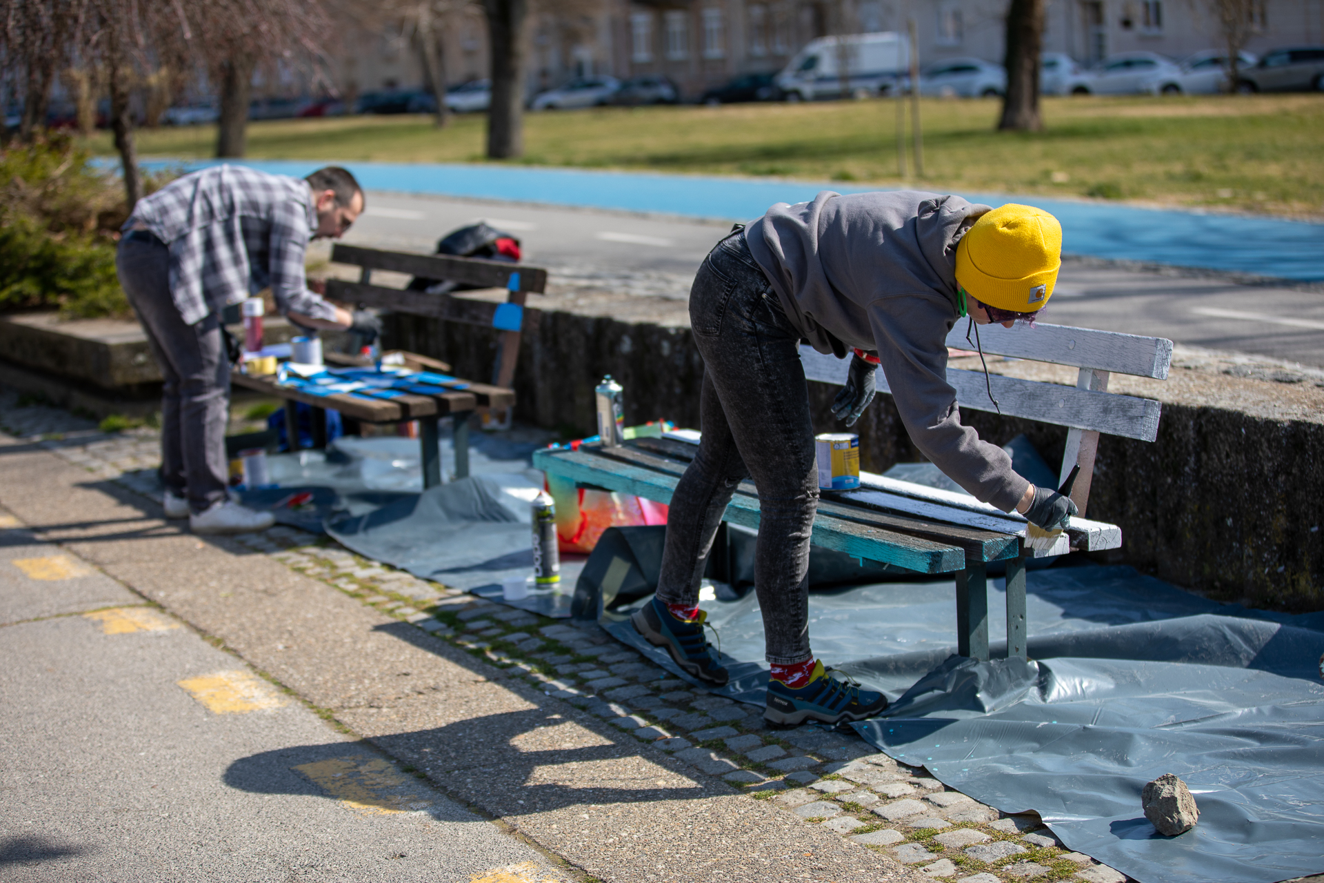 Za organizaciju oslikavanja pobrinula se osječka udruga PLANTaža: “Odazvali smo se pozivu organizatora da sudjelujemo u ovom projektu, angažirali akademske umjetnike i tako željeli pridonijeti promoviranju umjetničkog rada i biti dio priče o Porinovim klupama u Osijeku”, rekla je Darija Walter, predsjednica Udruge PLANTaža.